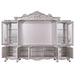 The Bently entertainment center is the perfect centerpiece for your media room. Gorgeous carved floral motifs and over-sized Queen Anne legs grace each part of this set. The TV stand easily accommodates a 70-inch panel TV. Coupled with the side piers, you'll have provide plenty of storage space for organization or display. A lavish carving crowns the lighted center bridge to emphasize the glory of this elegant, champagne-colored entertainment set.