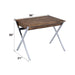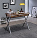 Combining chrome "X" legs and beautifully finished wood, the Callers desk is statement piece as well as a functional desk. It comes with 2 drawers that follow the front angle created by the "X" design of the sides. It is a wonderful pairing of hard lines and warm wood tone.