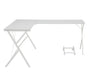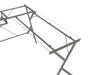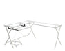 Corner Computer Desk Orientation: "L" ShapeX-Shape Metal Frame BaseRectangular Table Top w/Tempered GlassKey Board Tray IncludedComputer Holder Included