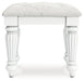 Fit for a princess. This vanity stool’s crisp matte white finish pairs with charming elements like turned legs, ornate beading and sumptuous button-tufted upholstery—perfect for your girly girl. This piece's crowning touches are sure to make your little one feel like royalty.