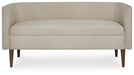 | Details | Polyester upholstery, Wood legs with brown finish, Attached seat cushion, Curved back, Minor assembly required, simply lay flat and attach feet | |