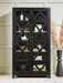 | Details | Made with hardwood solids, oak veneer and engineered woods, Black and natural brown finishes, Light bronze-tone door pulls, 2 doors with glass inserts, 5 shelves (3 adjustable and 2 fixed), Fully assembled | |