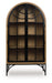 Store in style with this accent cabinet. Dressed in versatile natural brown and black finishes, it seamlessly suits spaces from casual to modern. An arched profile elevates the look and feel. Whether it's used to display your favorite dishware or as a handsome makeshift pantry in small spaces, this cabinet makes a chic impression.