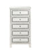 The Noor Cabinet will add a contemporary touch to any room in your home. With its clean lines and faux diamond inlay, this brilliant cabinet showcases a distinctive style for an intriguing look. The cabinet features five storage drawers with safety stop and self closure. This unique accent piece complements a wide range of decor and its modern design is a useful addition to any room decor.