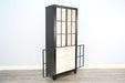 - Sleek black finish with tall glass-front door