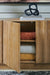 | Details | Made with solid mango wood, Back made with mango veneer and engineered wood substrate, Natural light brown finish, 4 doors with soft-close hinges, 2 fixed shelves, Openings in back for electronics, Fully assembled | |