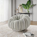 Prepared to envelope you into its soft embrace, the contemporary Lily accent chair will always welcome you with rounded, yet open arms. Its unique pumpkin shape is formed from thick channels of tightly filled cushions wrapped in a monotone striped print fabric from top to bottom that flows around you for complete support. The striking design is finished with a silver metal base that swivels 360 degrees for hours of endless relaxation.