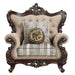 Embrace the essence of lavish living into your home with this Ragnar sofa. Highlighting detailed carvings that naturally follow with the elegant curves of the rolled arms that make a transition to the wood-trimmed arched backrest which features a camel hump wooden frame silhouette. The front legs and the front apron boast beautiful carved detail. Sit in comfort on the pocket coil seating and the included 7-throw pillows.