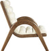 Elevate your surroundings with the Randal vegan leather upholstered accent chair, featuring rich vegan leather and a brown walnut finish wood frame. Designed with deep channel tufting, this Art Deco-inspired piece offers both style and comfort, making it a standout addition to any modern or classic interior. The sleek combination of luxe upholstery and warm wood tones creates a sophisticated contrast, perfect for adding a touch of elegance to your living room, office, or lounge area.