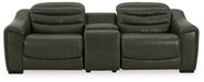 Details U63404S5: Includes 3 pieces: left-arm facing power recliner, armless chair and right-arm facing power recliner, "Left-arm" and "right-arm" describe the position of the arm when you face the piece, One-touch power control with adjustable positions, Easy View™ adjustable headrest and zero-draw USB port, Zero-draw technology only consumes power when the USB receptacle is in use, Corner-blocked frame with metal reinforced seat, Attached cushions, High-quality foam cushions wrapped in poly fiber, 100% top grain leather covers inside areas such as the back, seat and arm cushions; skillfully matched faux leather covers the remaining areas, Due to its natural origin, real leather can show individual characteristics such as healed scars, growth marks, grain variation and shade variation, Natural variations make each hide unique and do not detract from the wearing qualities of leather, Zero wall recliner design requires minimal space between wall and chair back, Power cord included; UL Listed, U63404S2: Includes 3 pieces: left-arm facing power recliner, console with storage and right-arm facing power recliner, "Left-arm" and "right-arm" describe the position of the arm when you face the piece, One-touch power control with adjustable positions, Easy View™ adjustable headrest and zero-draw USB port, Zero-draw technology only consumes power when the USB receptacle is in use, Corner-blocked frame with metal reinforced seat, Attached cushions, High-quality foam cushions wrapped in poly fiber, 100% top grain leather covers inside areas such as the back, seat and arm cushions; skillfully matched faux leather covers the remaining areas, Due to its natural origin, real leather can show individual characteristics such as healed scars, growth marks, grain variation and shade variation, Natural variations make each hide unique and do not detract from the wearing qualities of leather, Console with 2 cup holders, hidden storage, dual 110V outlets and dual USB charging ports, Zero wall recliner design requires minimal space between wall and chair back, Power cord included; UL Listed,