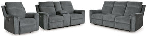The ability to go from fully upright to relaxed and stretched out, all at the touch of a button, awaits. A beautiful blend of plush upholstery and casual style, this power reclining seating set invites you to sink into ultimate comfort. Whether you're hosting guests or lounging alone, you’ll find it hard to leave your living room—that’s a given.