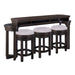 - Includes the Console Bar Table & 3 Uph Swivel Console Stools