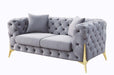 Jelanea - Loveseat With 2 Pillows - Gray Velvet & Gold