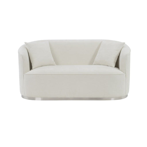 ACMEUnwind and rest when seated on this luxurious beige chenille Odette loveseat. This lovely loveseat is just the thing to inject drama into your livi...