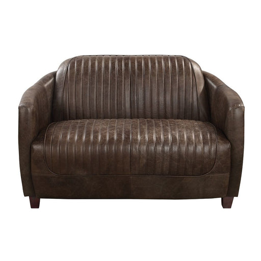 ACMECuddle up in this decadently plush Lydia sofa set. The set is upholstered in a warm and earthy brown leather-aire. Distinctive elements include wra...