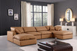 Comfy - 6 Piece Faux Leather Modular Double Chaise Sectional - Cognac