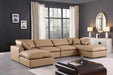 Comfy - 6 Piece Faux Leather Modular Double Chaise Sectional - Tan