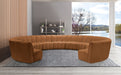 Create a seating group that works for every possible situation with this Infinity 11-piece sectional and other pieces in the Infinity collection. Upholstered in soft Saddle velvet material that feels great against the skin and offers long-wearing beauty, this piece fits with other Infinity items for an infinite number of combinations that get your seating requirements just right but that look just as nice when used on their own.