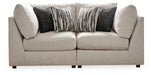 Details Includes 2 wedges, Corner-blocked frame, High-resiliency foam cushions wrapped in poly fiber, Decorative pillows included, Polyester upholstery, Exposed legs with faux wood finish, Platform foundation system in sectional resists sagging 3x better than spring system after 20,000 testing cycles by providing more even support, Smooth platform foundation maintains tight, wrinkle-free look without dips or sags that can occur over time with sinuous spring foundations