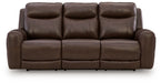 Commanding in presence yet tailored in detail, this power reclining sofa brings a refined lounge experience to your living space. Supple top grain leather and expertly matched faux leather, accented with jumbo stitching and contrast welting, create a richly layered look that feels custom-made. Power reclining, adjustable headrests and lumbar support turn this sofa into a personalized escape. And built-in USB charging keeps essentials close by. It's a perfectly curated balance of form and function.