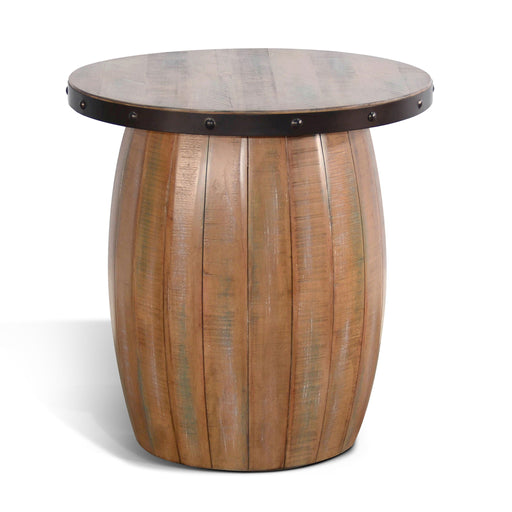 Sunny DesignsIntroduce a touch of rustic charm and industrial flair to your living space with our Planked Wood Round Table featuring a striking metal rivets acc...
