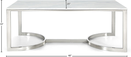 Meridian FurnitureKeep the modern vibe going with this Skyler stainless steel coffee table from Meridian Furniture. This table features architectural bases with a sc...
