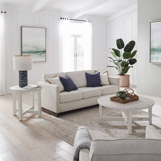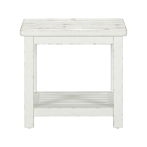 Liberty FurnitureElevate your space with the Modern Farmhouse splay leg cocktail table and splay leg end tables. Crafted of poplar solids with knotty white oak vene...