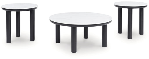 Signature Design by Ashley®Clean lines meet cool curves with this accent table set. Simple dowel legs and a black finish lend a modern vibe, while replicated white marble top...