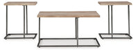 | Details | Includes coffee table and 2 end tables, Made with tubular steel frame, decorative laminate and MDF substrate, Tabletop with replicated reclaimed lumber pattern, Legs with durable matte black powder coat finish, Assembly required | |