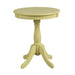Offered in four colors: White, light yellow, black and light green in the sought after shabby chic look. The Alger side table exemplifies this look and elegantly designed with its traditional design of round top, shapely turned base and four stylized knee legs. This table will go well with any design style.