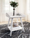 Display your decor with simple style on this accent table. Constructed of wood and engineered wood in a crisp, white finish, this table blends easily with your existing living room aesthetic or stands in as a kid's bedside table. A gallery rail top, undermount shelf and dual USB chargers keep your life (and your look) simply sensational.