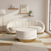 Give your living space a bold makeover with this breathtaking white lacquer metal table with a gold metal base from Meridian Furniture. Its round, contemporary design pairs perfectly with any existing modern furniture in your home. Use it as an accent piece, a main table, or a table in any room in your home. Its clean white color compares nicely with the gold metal base, which provides sturdy support in addition to appearing fabulous.