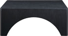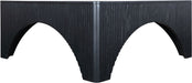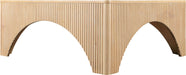 Introducing a striking addition to modern living spaces, the Eloise oak veneeer coffee table brings a bold and architectural presence. Its sleek, square top is complemented by textured vertical detailing along the sides, adding depth and visual intrigue. The arched cutouts at the base create a sculptural look, creating a statement while offering ample surface space for decor or everyday essentials, perfect for contemporary or minimalist interiors.