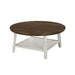The Flaherty 3-in-1 Occasional Table Set combines durability and farmhouse-inspired style with solid pine and ash veneer construction. A two-tone design pairs warm brown tops with crisp white bases for a fresh, versatile look. The round coffee table and two matching end tables each include a lower shelf for storage or décor, while tapered legs and clean lines create timeless appeal. Shipped together in one carton, Flaherty delivers a complete, stylish, and functional living room solution.