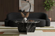 Lend your room a refined, elegant look with this Formentera coffee table. This table oozes sophistication from its marble with veining construction to its uniquely shaped base. The perfect coffee table for adding a modern touch to your space, this piece steals the show, doubling as part art, part utilitarian furniture must-have. And it's crafted by hand with genuine marble, so you can trust it to last for years if not generations of use.