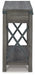 Details Made of metal and engineered wood, Gray decorative wood grain laminate, Metal crossbuck accents, 2 smooth-gliding drawers, Fixed lower shelf, Assembly required