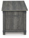 | Details | Made of metal and engineered wood, Gray decorative wood grain laminate, Metal crossbuck accents, Lift top design; hidden storage under lid, Fixed lower shelf, Assembly required | |
