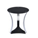 The Geiger coffee table expresses modern design and simplicity while still being functional and a conversation table. It features soft curved metal legs supporting a black glass top and a reverse cut base. The bottom wooden shelf gives you additional space for storing or displaying your accent pieces.