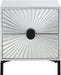 Bring on the glam with this pretty Glitz side table. This elegant table features a starburst design across the panels on its two drawers, making it an eye-catching element for your living room or bedroom space. The shared hardware on the drawers is matte black for a luxe look against the antique silver color palette. Add this attractive side table wherever creating a dramatic effect is the goal.