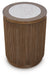 Refresh your living room with the relaxed elegance of this end table. Its round drum silhouette features a welcoming brown finish and eye-catching reeded details for a touch of texture. Topped with faux stone for chic, modern contrast, this table makes a statement in spaces ranging from casual to contemporary.
