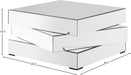 Bring home this Haven coffee table to add a distinctly modern look to your living room or den. This eye-grabbing table from Meridian Furniture features a triple-stacked platform design in a square shape for a geometric look that's more like a piece of fine sculpture than the true utilitarian item it truly is. The surfaces of the table are mirrored, adding a light, airy touch to your space and giving it a beautiful aesthetic in contemporary decor.