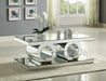 Make this Joceyln coffee table the center of attention in your living room. This handsome table features a bold design with a geometric footprint that's sleek, chic, and modern. The surface areas of the table are covered in mirrored accents and crystal acrylics, adding depth and dimension to your room while upping the piece's wow factor. The large surface area gives you room for displaying books or other collectibles. Pair it with other items in the Jocelyn collection for a coordinated, modish finish.