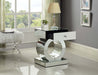 Make this Joceyln end table the center of attention in your living room. This handsome table features a bold design with a geometric footprint that's sleek, chic, and modern. The surface areas of the table are covered in mirrored accents and crystal acrylics, adding depth and dimension to your room while upping the piece's wow factor. The large surface area gives you room for displaying books or other collectibles. Pair it with other items in the Jocelyn collection for a coordinated, modish finish.