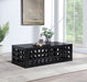 Bring your room to life with the unexpected design of this Kinsley oak coffee table. Part art, part functional item that adds convenience to your space, this coffee table offers a design that instantly commands attention wherever it's used. Multiple cutouts along the sides of this table allow for a fun and unique aesthetic in your room, and its ample top gives you a place to hold magazines, books, remotes, and other items within easy reach of your sofa or couch. A rich finish adds modernity to the table's art deco design.