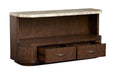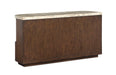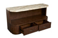 The McPherson table collection blends organic form with modern sophistication. A rich Burnt Umber finish highlights the sculptural contours of the wood base and while a soft stone top adds contrast and texture. Thoughtfully designed with Satin Nickel hardware and this collection merges natural warmth with contemporary form — an ideal focal point for spaces that embrace bold silhouettes and elevated materials. Whether styled simply or layered with décor and McPherson brings a grounded elegance to any room.