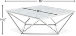 Keep the modern vibe going with this Skyler stainless steel coffee table from Meridian Furniture. This table features architectural bases with a sculptural design that's chic and contemporary. The tops of each table feature solid stone tops for durability and remarkable style.
