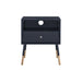 The Sonria II end table offers a contemporary take on a stylish retro design, ideal for your living room, family room, or bedroom. With its open storage compartment and bottom pull out drawer, you can conveniently store your remote controls, magazines, or other small items. The natural wood featured at the base of the legs provides that extra flare to bring any room together. Can be used as an end or side table or pair for either side of the bed for a perfect nightstand. Some assembly required.