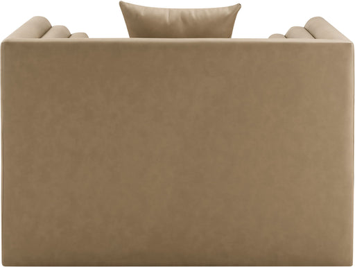 Meridian FurnitureSoft tan vegan leather and a bold, structured silhouette give the Everett chair a modern edge. Cushioned with plush pillows and built with a solid ...