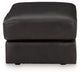 Keen on crisp, contemporary design? Adore the pleasure of leather? Look no further. This ottoman satisfies on every level. Richly textured and decadently supple, the cushion is wrapped with expertly matched leather and faux leather upholstery in an on-trend onyx tone. The ottoman's clean-lined profile completes its simply chic appeal.