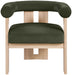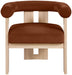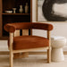 Wrapped in ultra-luxe velvet, the Arienzo upholstered chair captures the elegance of Art Deco design. Its rounded backrest and plush seat rest on sturdy natural-finished solid wood legs for a look that's both sculptural and inviting. A true statement piece, it adds warmth and sophistication to any room.